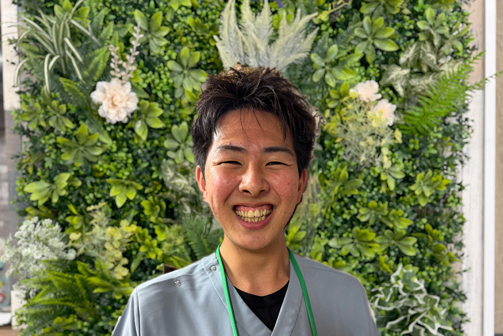 - 以前は総合病院の回復期病棟に勤め、入院患者様を対象にしたリハビリを行っていました。その中で、退院後の生活に寄り添う道に興味を持ち、在宅の道に進みました。在宅としては今年で3年目になります。