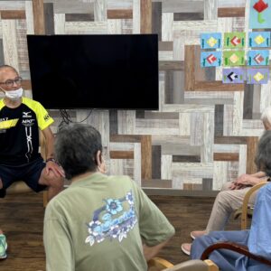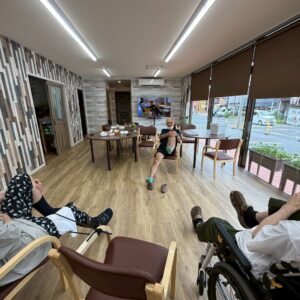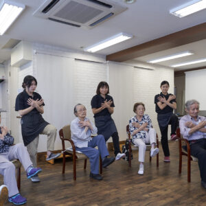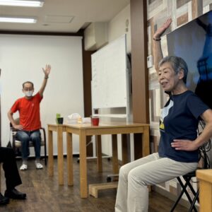 エクササイズでは楽しくからだを動かし、現状の身体機能を維持させ、そして少しでもその機能を向上させることを目指します。特に重視していることは、下肢と体幹の筋肉をしっかり動かし、有酸素的な運動を交えながら身体を目覚めさせて、ご利用者様の日常生活動作(ADL)に少しでもプラスの変化をもたらすことです!椅子に座ってのシンプルなエクササイズが中心ですので、誰でも手軽に出来ます。