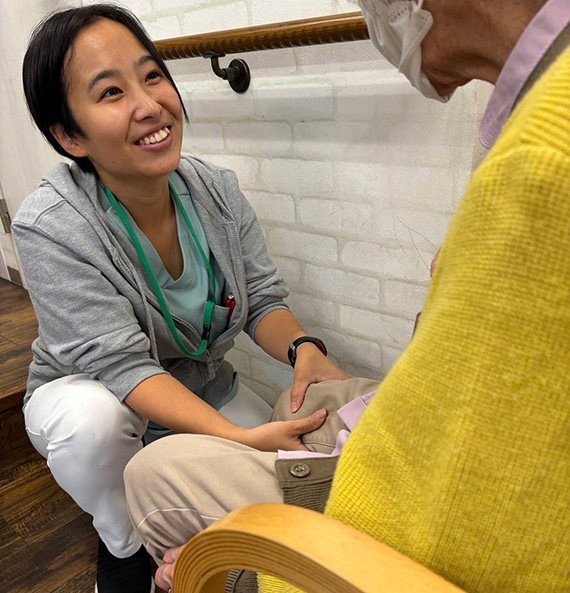 所属している看護師やセラピストが日々の体調管理を行い、適切な運動メニューを考えアドバイスさせていただきます。退院後などの医療依存が高い方も含めて対応いたします。