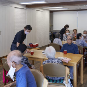 私たちはご利用される方が「住み慣れた地域で住み続けたい」の声を継続していただく為のネットワークの一つになり まるでお気に入りのカフェでゆっくり落ち着いて過ごせるかの様な存在でありたいと思っています。 ご利用される皆様が「したい」「やりたい」を叶えられ、全てを介護としてしまうのではなく、さりげなくサポートし 「最後までご自身で」を大切にしています。 また地域との交流を大切にし、交流の場づくりとしてイベント開催や参加地域で活動している方々の協力をいただきながら 活動やプログラム(運動・趣味活動)を行い、その地域に根付いた施設を目指します。